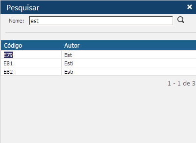 Para o campo Cutter, existe a possibilidade de obtenção do seu valor através da interface de Pesquisa acionada através do botão ao final do campo onde se informa o Cutter.