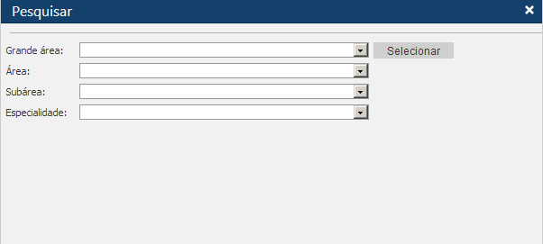 A Área de Conhecimento pode ser obtida através da interface de Pesquisa, acessada no final do campo, onde é possível informar a área de conhecimento.