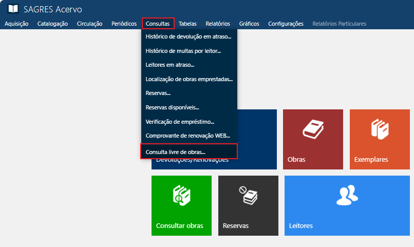 Acessível pelo menu Consultas > Consulta Livre de Obras.