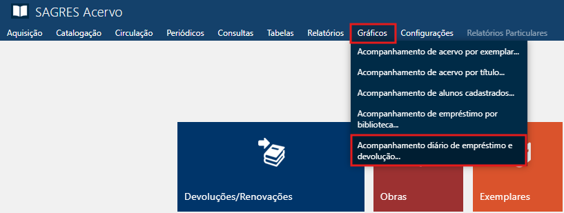 Menu de Acesso - Gráficos > Acompanhamento diário de Empréstimos e Devoluções