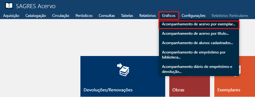 Acessível pelo menu Gráficos > Acompanhamento do Acervo por Exemplar.