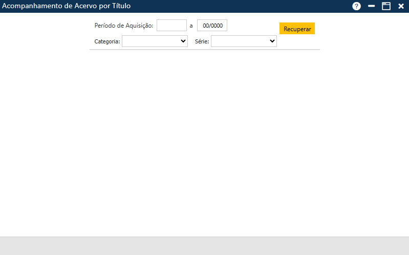Inicialmente, o usuário deve escolher qual o Período de Aquisição, a Categoria (Biblioteca ou Período de Aquisição) e a Série (Biblioteca ou Período de Aquisição) que deverão ser considerados.