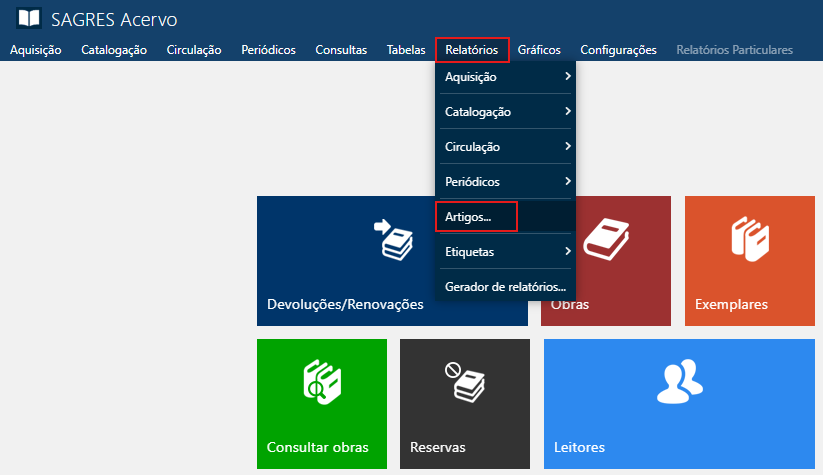 Menu de Acesso - Relatórios > Artigos