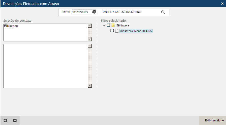 Após informar os filtros e o código do leitor, o usuário deve acionar o botão “Exibir relatório“.
