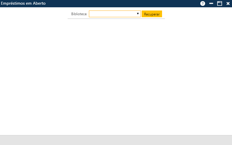 Inicialmente, o usuário deverá informar qual a biblioteca que será considerada para a seleção (campo Biblioteca) e, em seguida, deverá clicar sobre o botão Recuperar. O sistema apresentará a lista dos exemplares que estão emprestados no momento.