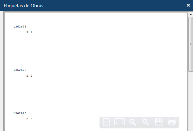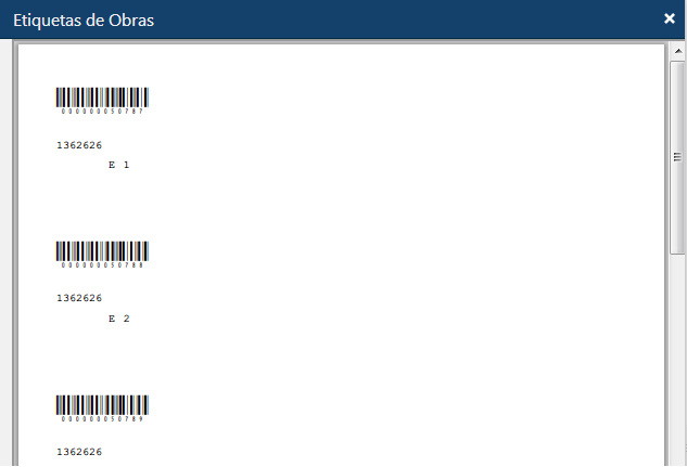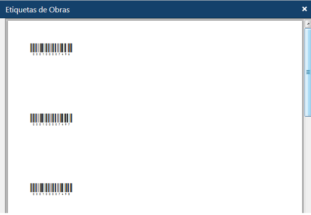 Acessível pelo menu Relatórios > Etiquetas > Etiquetas de obras.