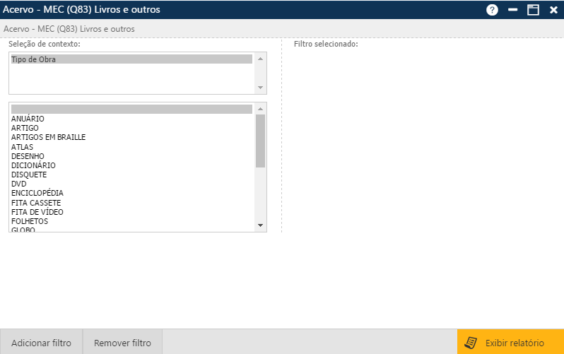 - Botão Remover – permitirá que o usuário remova da interface um ou mais relatórios já cadastrados;