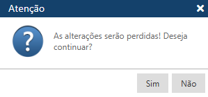 Caso o usuário tente sair da tela de cadastro sem salvar o registro, o sistema exibirá a seguinte mensagem de atenção: