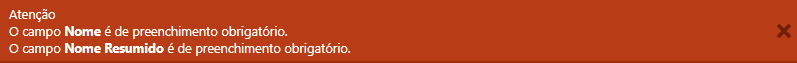 Existe um conjunto de campos de preenchimento obrigatório para incluir um novo Curso no sistema. São eles: