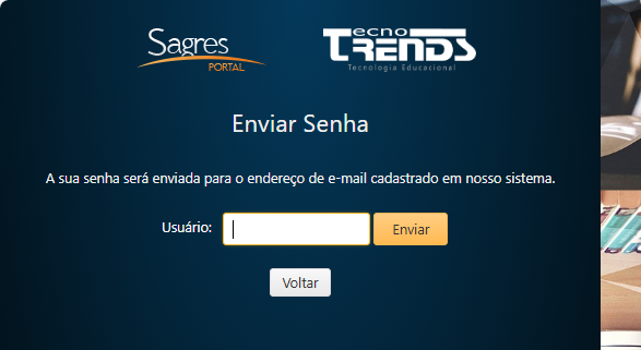 Tela do SAGRES Portal para recuperação de senhas dos usuários.