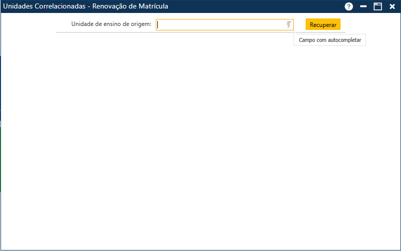 Ao acessar o menu descrito acima, o sistema apresentará a interface Unidades Correlacionadas – Renovação de Matrícula: