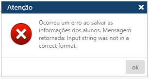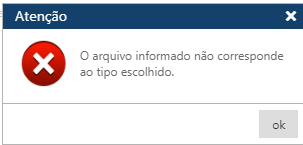 Se o arquivo lido não estiver for do tipo esperado, a aplicação exibe a mensagem: