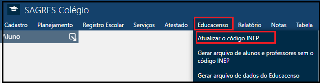 Acessível pelo menu Educacenso > Atualizar o Código do INEP, do módulo SAGRES Colégio.