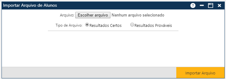 O Usuário deve selecionar o Tipo do arquivo (Resultados Certos ou Resultados Prováveis) a ser importado.