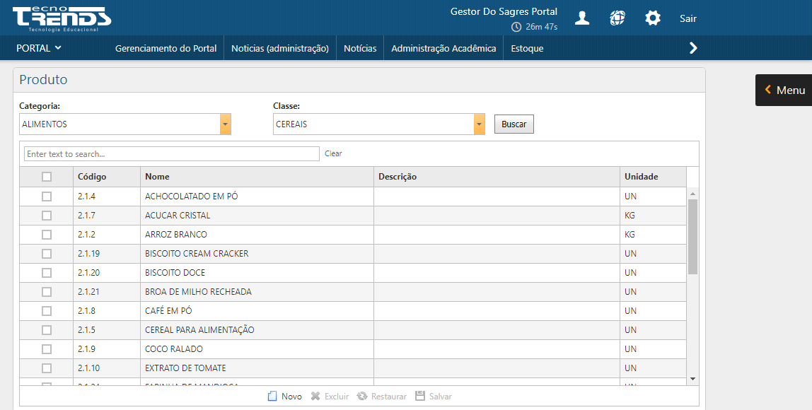A inserção de informações no Cadastro de Produtos é importante para o gerenciamento das rotinas que envolvem a entrada e saída dos produtos nos Almoxarifados.