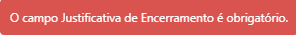 O campo Data de Vigência Final não pode ser alterado nessa interface. Já a Justificativa de Encerramento é de preenchimento obrigatório. Caso a tenha preenchido corretamente, ao clicar no botão confirmar, a seguinte mensagem será apresentada no topo da interface Editar Contrato: