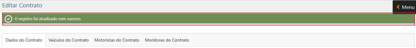. Se não ocorrerem problemas ao salvar, o sistema apresentará a mensagem “O registro foi atualizado com sucesso“.
