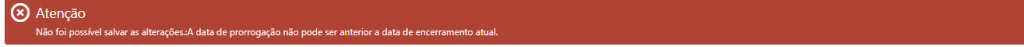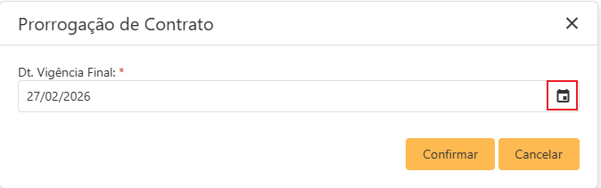 Por fim, clicando no botão confirmar, o contrato será prorrogado e terá sua Data de Vigência Final modificada.