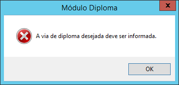 - Caso a via do diploma dos alunos não seja informada na interface Alunos > Configurações para a frente, a mensagem abaixo será exibida: