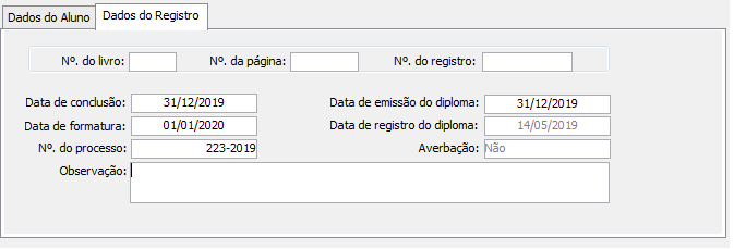 - Com Registros: retorna os alunos que já possuem registro no Livro de Diploma;