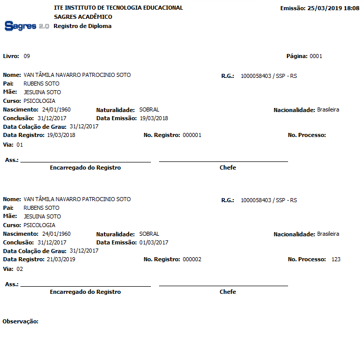 Relatório de Registro de Diploma