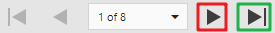 clicando no campo contornado em vermelho é possível passar para a próxima página e no campo contornado em verde pula para a última página do relatório. Esse botões auxiliam na visualização das páginas do relatório, caso o modo de exibição esteja em página a página