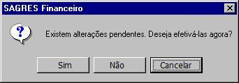 Os módulos da solução SAGRES realizam um controle sobre as atualizações que estão pendentes nas interfaces. Antes que uma interface seja fechada, o sistema verifica se existem alterações que ainda não foram salvas no banco de dados.