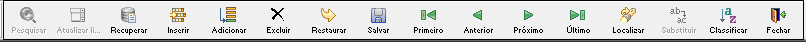 As interfaces do Sagres possuem uma série de funções disponíveis na Barra de Ferramentas das interfaces. Algumas destas funções também estão disponíveis através dos itens do menu Registro.