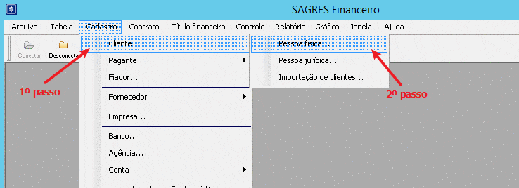 Estas interfaces são acessíveis através dos menus Cadastro > Cliente > Pessoa física e Cadastro > Cliente > Pessoa jurídica, do SAGRES Financeiro.