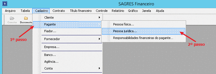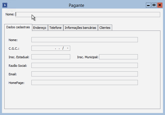 O responsável pela quitação dos valores de um título financeiro é chamado de Pagante, que podem ser: Pessoa física ou Pessoa jurídica. O cadastro de cada um deles possui sua própria interface e são pré-requisitos para funcionamento de algumas telas do sistema, como a de Títulos a receber e a de Títulos a pagar.