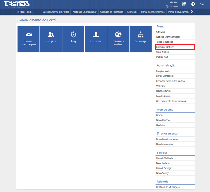 Gerenciamento do Portal - Canais de Notícias