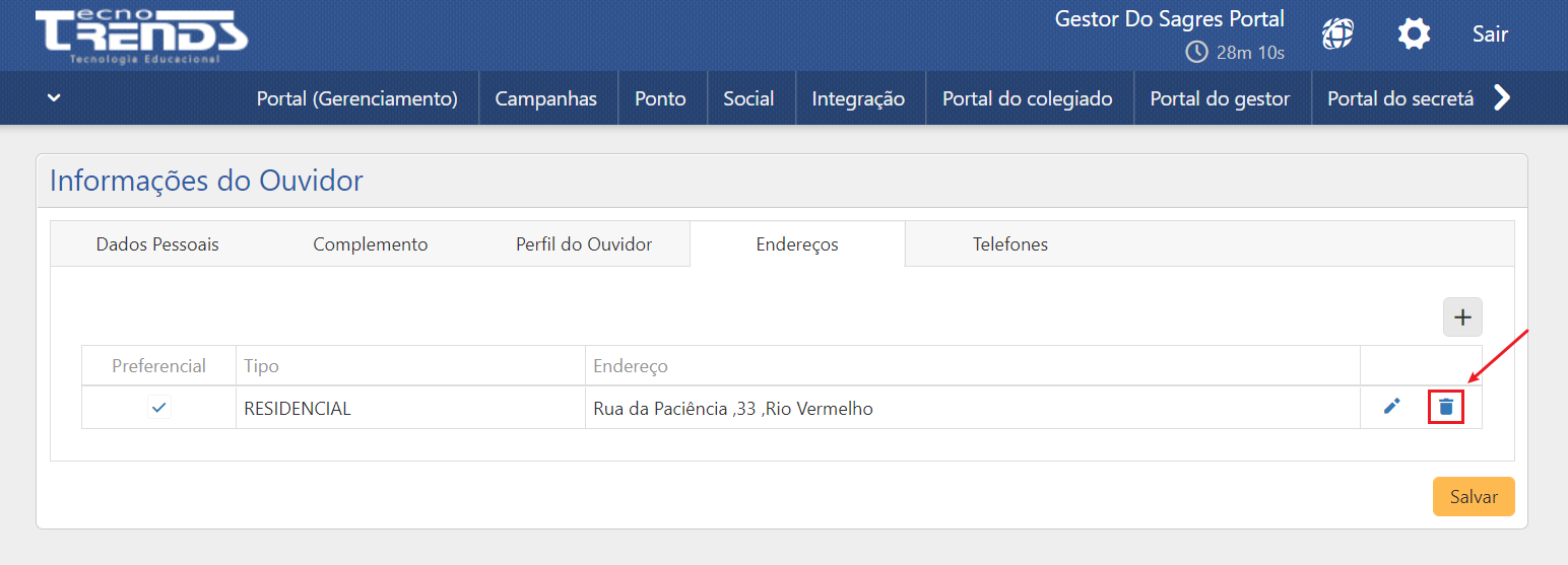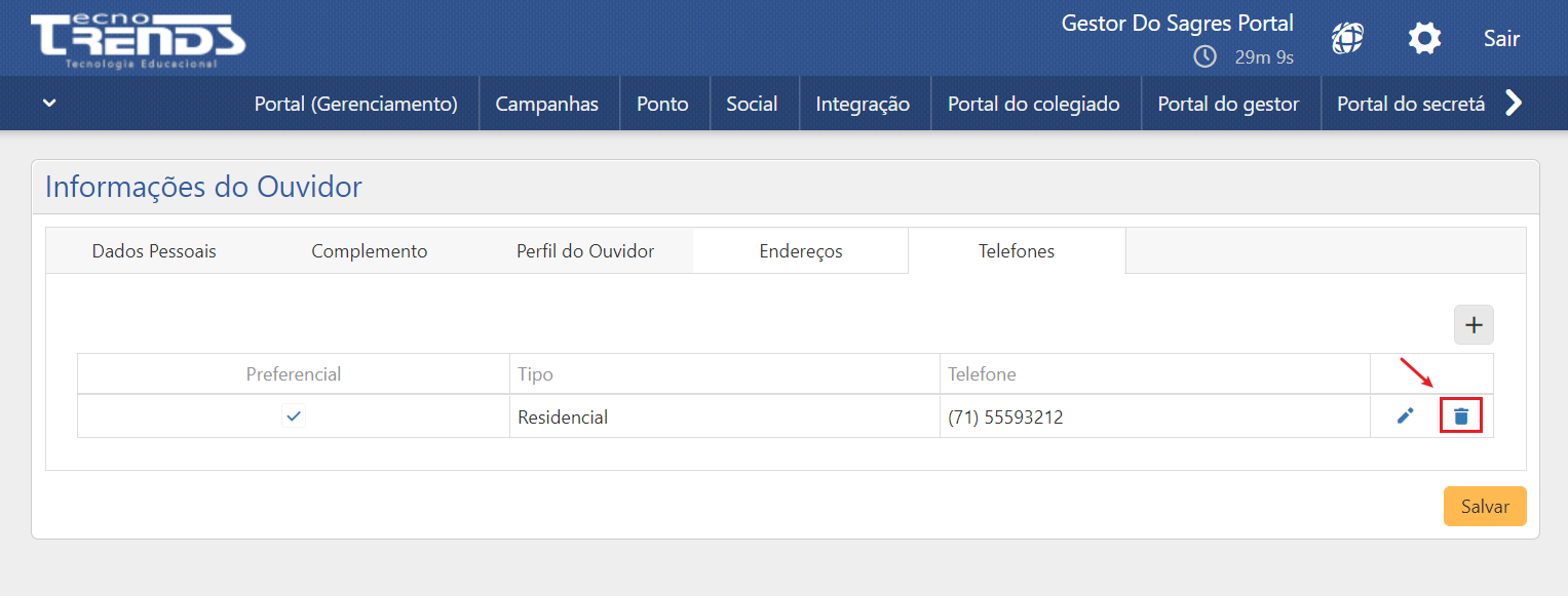 - Para finalizar a operação e gravar todas as alterações efetuadas, acione o botão Salvar (seta 4).