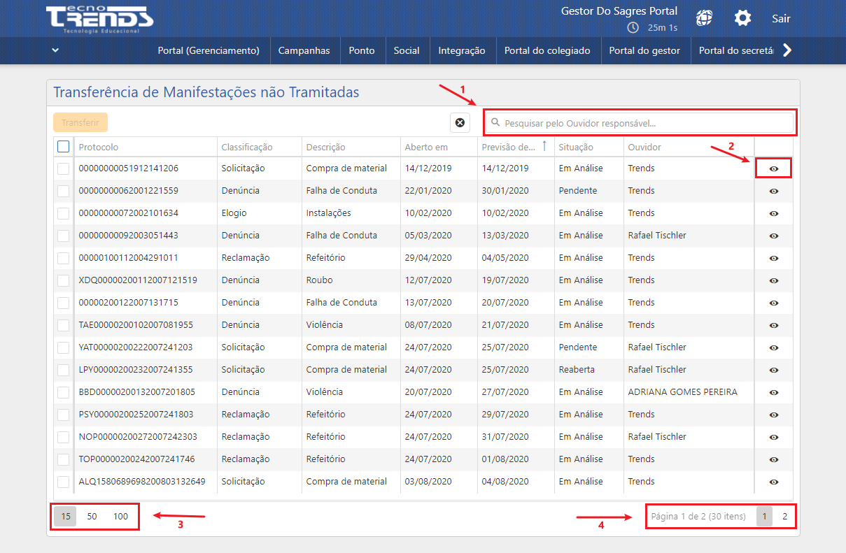 - Ouvidor: refere-se a pessoa que se encontra responsável pela resolução de cada manifestação.