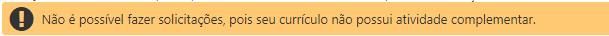 Se o aluno não está ativo em algum currículo que possua a natureza Atividade Complementar, ao acionar o menu para Solicitações > Atividade Complementar, o sistema exibirá a seguinte mensagem: