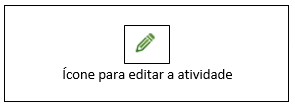 No fim da linha de cada atividade, há um ícone que permite a edição dos dados da atividade. Ao clicar nesse ícone, o sistema apresentará, na parte superior da interface, os dados da atividade em questão, de forma que o usuário possa editá-los. Também exibirá dois botões: botão Cancelar e botão Atualizar. Caso o usuário não queira salvar as atualizações realizadas, deverá clicar no botão Cancelar. Caso queira salvar as atualizações realizadas, deverá clicar no botão Atualizar.