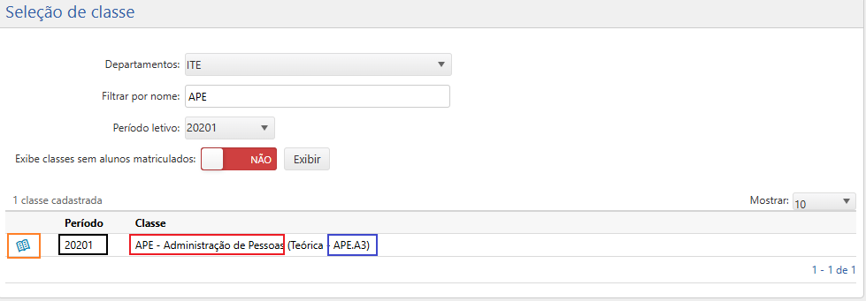 Esta interface permite que o usuário visualize Todas, 10, 20 ou 30 classes em cada apresentação da tela.